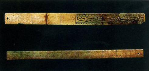 出土于殷墟的三支骨尺,长度皆在16厘米左右,正好是中等身高人拇指尖至食指尖间一拃的长度,与“布手知尺”相吻合。古人深知用人体作长度标准误差很大的道理,因此一直在寻找一种复现性较好的自然物来定义一尺的长度。