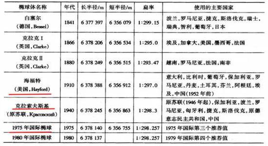 在1952年以前,中国使用的是美国的海福特(hayford)椭球体。