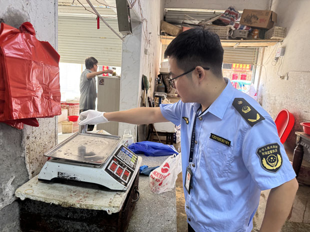 精准“把脉”,严查细检保公平。工作人员深入辖区农贸市场、水果店、卤菜店、黄金饰品店等经营场所,逐户逐秤进行“体检”。对于检测中发现的个别存在偏差、标签模糊的“问题秤”,当场责令商户停用并限期送修,从源头上杜绝缺斤短两。